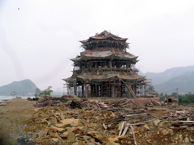Theo anh Ngô Xuân Chiến, một thợ mộc đang thi công ở đây cho biết, chỉ riêng phần mái của ngôi Tam Thế đã rộng tới 4.000m2. “Toàn bộ phần mái, chủ đầu tư đã mời thợ từ tận TP. Huế ra lợp. Họ phải lợp trong 3 tháng liền mới xong. Mỗi ngày chỉ lợp được 2 hàng ngói”- anh kể.
