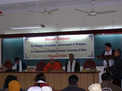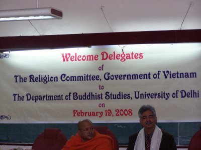 Vào sáng ngày 19 tháng 02 năm 2008, Đoàn Ban Tôn giáo Chính phủ Việt Nam do ông Nguyễn Thanh Xuân – Phó ban Tôn Giáo Chính phủ làm trưởng đoàn kết hợp với Đại sứ quán Việt Nam tại Ấn Độ gặp gỡ và trao đổi với Phân khoa Phật học tại Đại Học Delhi, đồng thời gặp gỡ Tăng Ni sinh Việt Nam du học tại Ấn Độ nhân dịp xuân mới 2008.
