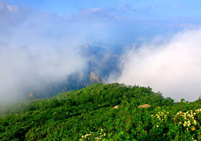 Mây dày đặc bao quanh đỉnh Zushan sau một trận mưa lớn ngày 1/7. Ảnh: China Daily.