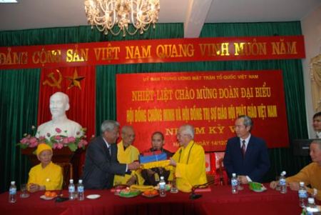 Chiều tối nay, sau lễ bế mạc Đại hội đại biểu Phật giáo toàn quốc lần thứ VI, chư tôn đức giáo phẩm đại diện Trung ương GHPGVN đã tới chào Trung ương Đảng, Chính phủ và UBTW Mặt trận Tổ quốc Việt Nam.