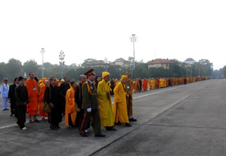 Sáng nay 12/11/2007, chư tôn đức giáo phẩm, chư Tăng Ni, Phật tử và đại biểu dự Đại hội Phật giáo Việt Nam lần VI do Đại lão Hòa thượng Thích Phổ Tuệ – Phó Pháp chủ kiêm Chánh thư ký Hội đồng Chứng minh dẫn đầu đã vào Lăng viếng Chủ tịch Hồ Chí Minh. Trân trọng giới thiệu chùm ảnh của sự kiện này.