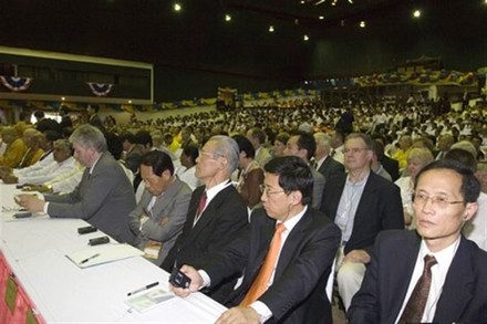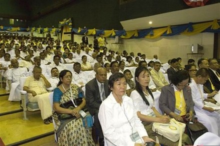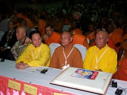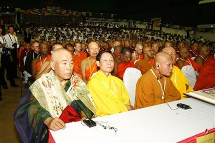 Đoàn đại biểu Việt Nam: từ phải qua: Hòa thượng Thích Trí Tâm, HT. Thích Thiện Nhơn, GS.TS. Lê Mạnh Thát