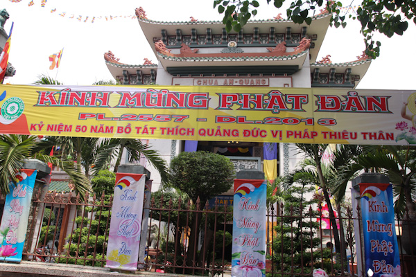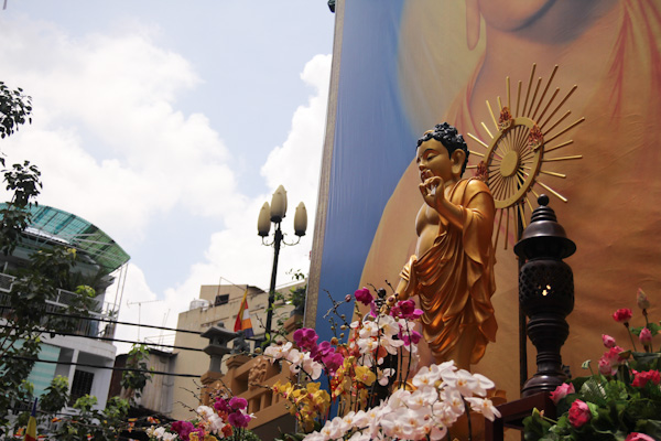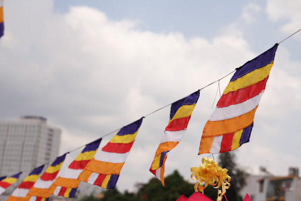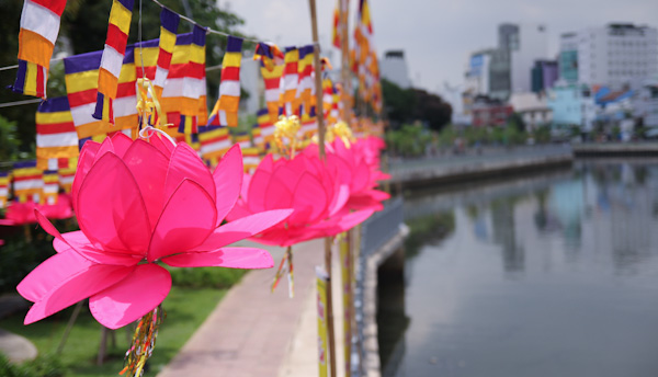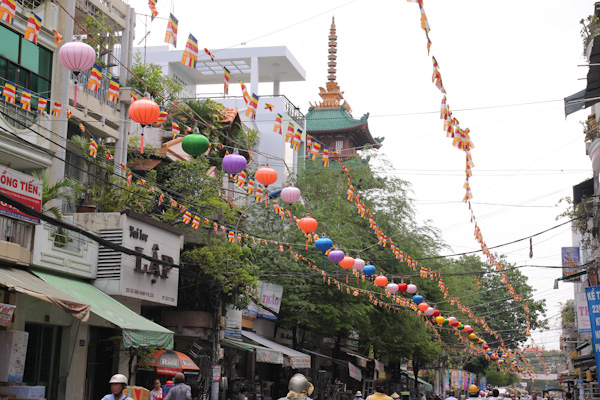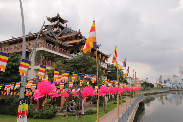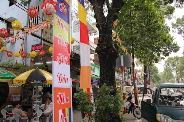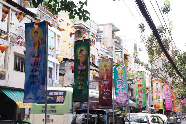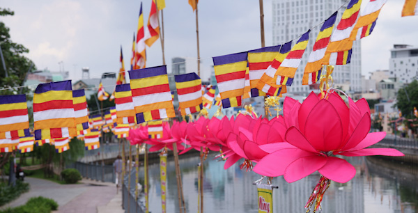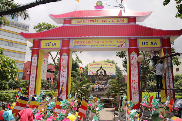Hân hoan đón mừng Đại Lễ Phật Đản PL 2557. Cờ ngũ sắc, đèn hoa, băng gon, biểu ngữ… mừng Phật Đản được trang hoàng trên mọi nẽo đường lớn nhỏ của TP.HCM. Ngoài ra các Tự Viên trên thành phố cũng dựng những Lễ Đài quy mô hơn mọi năm để chuẩn bị đón mừng ngày Đại Lễ