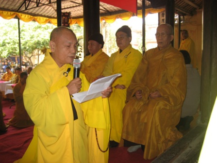 Hòa thượng Thích Thiện Nhơn – Phó chủ tịch kiêm Tổng thư ký Hội đồng Trị sự tuyên đọc Tiểu sử và hành trạng của Đức đệ nhị Pháp chủ Thích Tâm Tịch