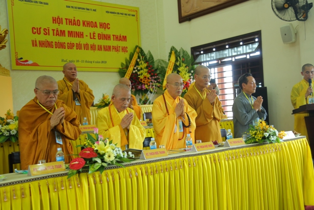 HT. Thích Đức Thanh – UVTT HĐTS GHPGVN, Trưởng Ban Trị sự GHPGVN tỉnh TT. Huế đã có lời phát biểu chào mừng, nhấn mạnh Hội thảo khoa học lần này được tổ chức tại Thừa Thiên Huế đã thu hút nhiều học giả nghiên cứu gồm nhân sĩ trí thức và Tăng sĩ Phật giáo; đây là cơ hội để cùng ngồi lại nhìn nhận, đánh giá về Đại Cư sĩ Tâm Minh Lê Đình Thám bằng góc nhìn mới, mang tính nghiên cứu học thuật cao, nghiêm túc rút ra những bài học giá trị cho sụ nghiệp phát triển chung, mở ra triển vọng mới trong việc hợp tác nghiên cứu liên ngành những vấn đề Phật giáo, mối quan hệ giữa Phật giáo với xã hội ngày nay.