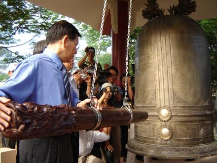 Chủ tịch nước Nguyễn Minh Triết thỉnh tiến chuông đầu tiên tại nghĩa trang Trường Sơn