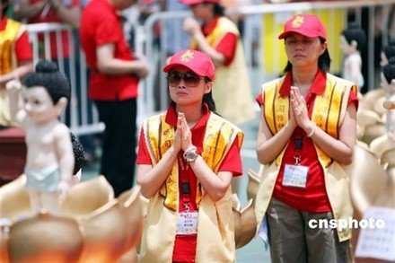 Tham dự đại lễ còn có các quan chức – Cao uỷ Ngoại giao Gao Siren, Bộ trưởng Bộ nội vụ Patrick Ho Chi-ping, Chủ tịch Hội đồng lập pháp Rita Fan Hsu Lai-tai, nguyên bộ trưởng Tư pháp Elsie Leung Oi-sie, đoàn đại biểu uỷ ban thường vụ quốc hội Trung Quốc, Chủ tịch Viện nghiên cứu Nho học Tong Yun-kai và ngôi sao kinh kịch Quảng Đông Liza Wang Ming-chuen. Trong chương trình đại lễ có một lễ truyền thống đó là ” tắm Phật” bằng nước tinh khiết và hoa thơm được cúng dường bởi Phật tử. Lễ hội này mang ý nghĩa gội rửa tham dục, sân hận và ganh tỵ nhằm đem lại cho tâm hồn một trạng thái tĩnh lặng và an vui. Theo nhà tổ chức lễ, vé vào Trung tâm hội nghị được phát miễn phí cho khoảng 50.000 tham gia lễ hội trong bốn ngày. Chủ tịch Hội Phật giáo Hồng Kông, ông Kok Kwong, người chịu trách nhiệm điều hành buổi lễ cũng như đón tiếp quan khách, nói “Đại lễ Phật đản năm nay đánh dấu niềm vui được nhân đôi đối với người dân Hồng Kông-đó là kỷ niệm mười năm Hồng Kông được trao trả về với Trung Quốc đại lục và ngày lễ Phật đản được công nhận là ngày lễ của toàn dân sau đó một năm. Điều này cũng thể hiện sự quan tâm của chính phủ Trung Hoa cũng như Chính quyền Đặc khu về tự do tôn giáo và tín ngưỡng”. Trung tâm Triển lãm và Hội nghị Hồng Kông trên bến cảng Victoria, nơi tổ chức đại lễ Phật đản. Ảnh:hkcec Trong ngày Phật đản, người dân Hồng Kông không phải bận tâm vì công việc, họ được nghỉ ngơi để phát triển tâm linh của mình. Trong số những người tham gia lễ hội, Lin-một tín đồ Phật giáo 40 tuổi đến từ Shenzhen với những người bạn nói: “Tôi theo Phật đã hơn 10 năm; hôm nay tôi đến đây vì tôi muốn xem các bạn tổ chức ngày Đản sanh của đấng từ phụ như thế nào. Tôi thấy các bạn tổ chức Đại lễ rất trang nghiêm, long trọng và quy mô hơn nhiều so với ỏ Shenzhen” . Simon Fung, một công chức 38 tuổi trong ngành môi trường nói rằng tuy mình không phải là một Phật tử, nhưng anh ấy muốn cảm nhận “cái tinh thần chung của ngày hội.” trong lần thứ hai tham gia lễ hội tại trung tâm triển lãm này; “thật là tuyệt vời vì chính quyền Đặc khu đã cho phép người dân được nghĩ ăn lương trong ngày Phật đản và làm cho nó trở thành ngày hội của toàn dân, điều đó sẽ tạo hứng khởi cho nhiều người tìm hiểu nhiều hơn về một tôn giáo cổ nhất của nhân loại mà giáo lý của nó là nhằm xây dựng cho mọi người có một cuộc sống tốt đẹp và tri lương” Hiện nay, Đặc khu hành chính Hồng Kông có khoảng 6,4 triệu dân, trong đó tín đồ Phật giáo khoảng 6,1 triệu, chiếm 90%. Đặc khu này được trao trả cho Trung Quốc đại lục vào ngày 01/07/1997 từ Vương quốc Anh. Ngày nay, Hông Kông là một trong những nền kinh tế tự do lớn nhất thế giới và là một trung tâm tài chính và thương mại hàng đầu của Á Châu. Tâm Đức —————————————- Vào ngày 24 tháng 5, một số Phật tử và những khách du lịch tham dự vào nghi thức tắm Phật nhân ngày Đản sanh của Phật Thích ca tại Công viên Victoria ở Hồng Kông để tỏ bày lòng thành kính của họ và cầu nguyện cho sự an lành. Tai đây cũng đã diễn ra nhiều sự kiện trọng đại khác. Một số hình ảnh trong ngày lễ tại Victoria Park – Hong