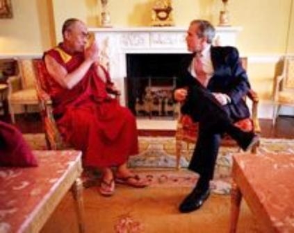Tổng thống G. W. Bush tiếp kiến đức Đạt Lai Lạt Ma tài Nhà Trắng. Ảnh: en.wikipedia