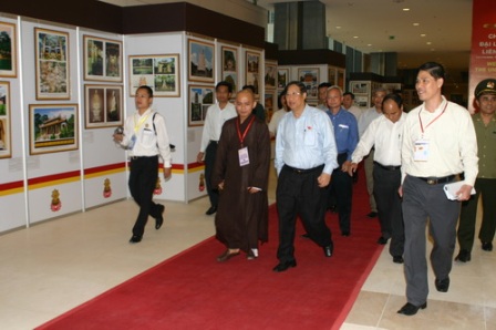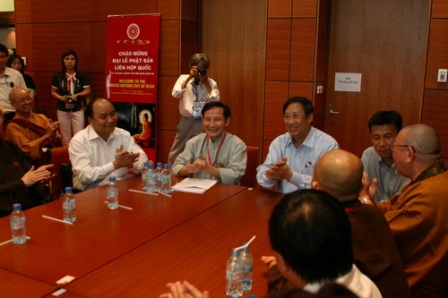 Chiều ngày 12/5/2008, Phó Thủ tướng Phạm Gia Khiêm đã đến thăm Văn phòng IOC – tại Trung tâm Hội nghị Quốc gia Mỹ Đình – Hà Nội. Ban tổ chức đã đón tiếp Phó Thủ tướng và báo cáo với Phó Thủ tướng công tác chuẩn bị cho ngày khai mạc Đại lễ Phật Đản Liên Hiệp Quốc. Phó Thủ tướng phát biểu động viên tinh thần tích cực của Ban tổ chức và mong rằng ngày Đại lễ Phật Đản sẽ thành công tốt đẹp; sau đó Phó Thủ tướng đã đi thăm các gian trưng bày triển lãm hình ảnh và mỹ thuật Phật giáo cùng các hạng mục công trình đang gấp rút hoàn thiện giai đoạn cuối.