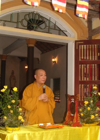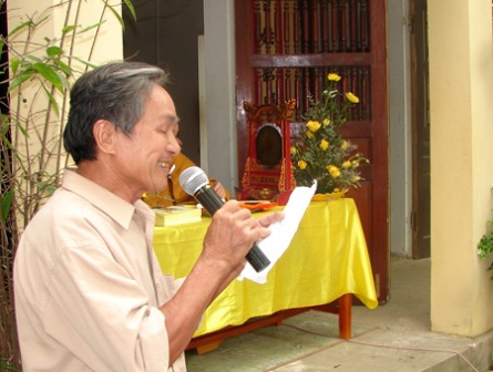 Phật tử địa phương đọc thơ chúc mừng buổi lễ.