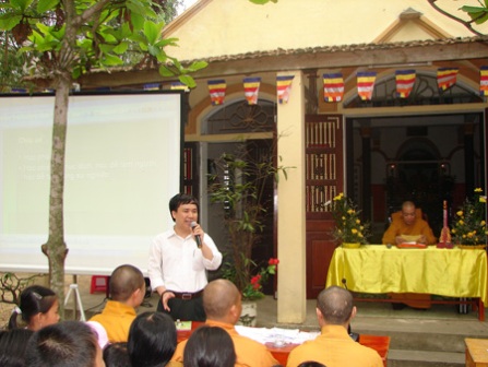 Cư sĩ, Tiến sĩ Huệ Minh – Lê Minh Nghĩa đang tư vấn cho các em về vấn đề học tập và thi cử. Anh khuyên các em học phải vui, học phải có mục đích và phương pháp. Việc chọn nghề phải phù hợp với năng lực và điều kiện bản thân. Anh nhấn mạnh việc học làm người và học để làm nghề