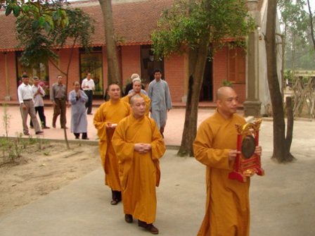 Các em đang chắp tay thành kính cung nghênh chư Tăng quang lâm đạo tràng. Từ lâu lắm rồi, hình bóng Tăng Ni vắng bóng trên mảnh đất này. Như nắng hạn gặp mưa, sự hồi sinh của Phật giáo Hà Tĩnh là niềm hạnh phúc đặc biệt cho người dân nơi đây