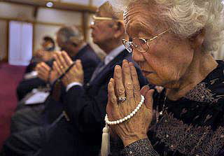 Cụ bà Tokiko Okana trong lễ cầu nguyện tại Sacramento Betsuin. Ảnh: Bryan Patrick