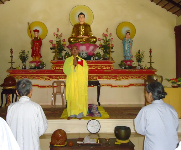 Sau phần Niệm Phật cầu gia bị, Đại đức Chánh Đại diện đã chủ trì phiên họp và đọc Thông tư  của Ban Trị sự về việc tổ chức Đại lễ Vu Lan năm Nhâm Thìn tại huyện A Lưới.