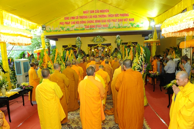 Sau nghi lễ cầu nguyện, chư Tôn thiền đức đã thọ tang, nhiễu kim quan cố Trưởng lão Hòa thượng và ghi sổ tang lưu niệm, chia buồn cùng Giáo hội Phật giáo Việt Nam, BTS GHPGVN tỉnh TT. Huế và môn đồ pháp quyến; nguyện cầu Giác linh cố Trưởng lão Hòa thượng cao đăng Phật quốc.