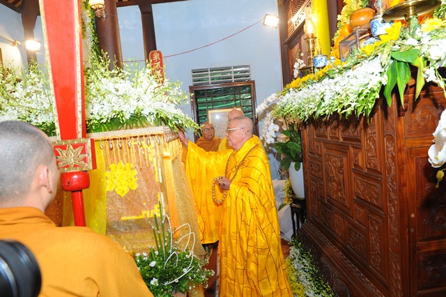 Đối trước Giác linh cố Trưởng lão Hòa thượng, chư Tôn thiền đức đã thành tâm dâng hương tưởng niệm. HT. Thích Huệ Minh – UVTT HĐTS GHPGVN, Trưởng Ban Nghi lễ Trung ương đã cử hành nghi lễ cầu nguyện.
