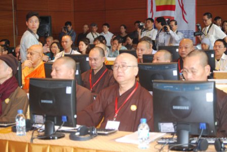 Buổi họp báo có sự tham dự của Hòa thượng Thích Thanh Tứ – Phó chủ tịch HĐTS Giáo hội PGVN, GS.TS Lê Mạnh Thát – Chủ tịch IOC, Đại đức Thích Nhật Từ – Tổng thư ký IOC, ngài Thitadhammo – Phó tổng thứ ký IOC và các thành viên IOC quốc tế cùng hơn gần 100 phóng viên, báo đài trong nước và quốc tế tham dự.